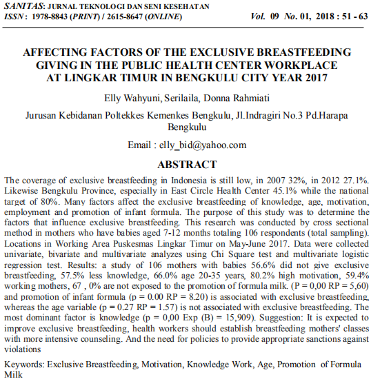 SANITAS Vol. 9 No. 1 tahun 2018 merupakan terbitan ke tiga perdana dalam Open Journal System (OJS). Pengiriman artikel, editing dan reviewing artikel yang masuk dilakukan secara online sehingga publikasi dapat dilakukan segera setelah mendapat persetujuan tim editor. Terbitan ini mempunyai wajah baru pada cover jurnal, bahasa, penulisan daftar pustaka dan tim editor. Daftar pustaka ditulis sesuai aturan penulisan Vancouver.