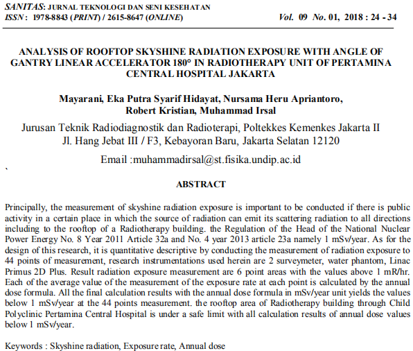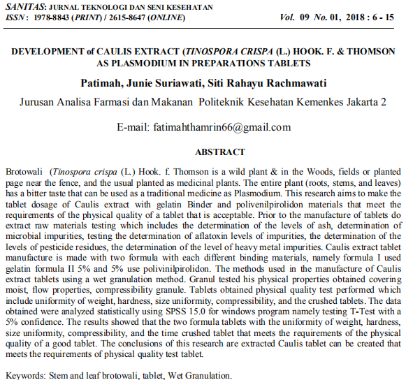 Puji syukur kepada Tuhan Yang Maha Esa kami panjatkan atas Berkah, Anugerah, Karunia dan Kehendak-Nya maka SANITAS: JURNAL TEKNOLOGI DAN SENI KESEHATAN (di singkat SANITAS) Volume 9 Nomor 1 tahun 2018 dapat diterbitkan.