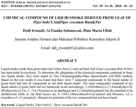 Chemical Compound Of Liquid Smoke Derived From Leaf Of Piper betle L And Piper crocatum Ruiz & Pav
